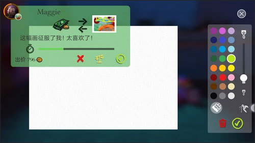 这时候不要着急,不同的画有不同的npc会喜欢,例如下图就被另一个npc所中意然后买走,不过作画的时候确实需要下功夫,大多npc都喜欢颜色鲜艳以及有耐心去作画的作品。