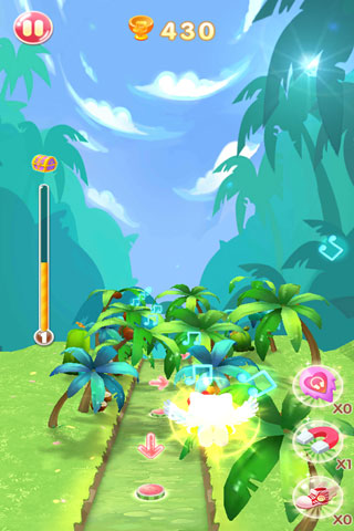游戏分为3条线可供玩家通过,滑动左右,角色就会左右横向移动一条线路,避开障碍物。向上滑动是跳跃,可以越过低的障碍物。向下滑动是滑铲,可以通过低位有空间的障碍物。