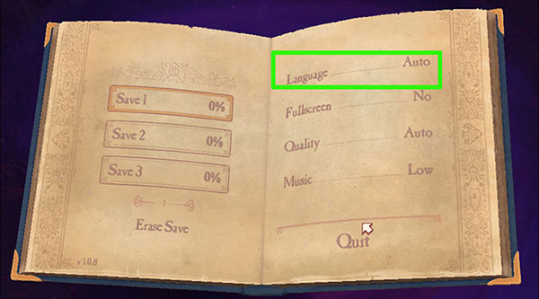 3、这里需要玩家点击绿色方框内的language一栏的选项更换中文(鼠标左、右键可以来回切换语言);