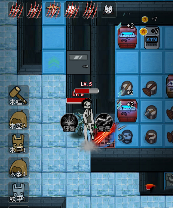 2、立马前往前往最近的地方,直接开始抓门,猎梦者的等级是由攻击次数来决定的,在前期快速把等级升上去就能遥遥领先。不过基本上第一波都是杀不了人的,就是升级,没血了就立马去最近的角落回血。