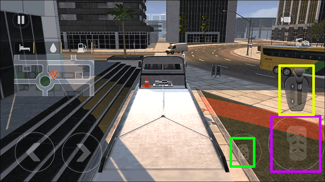 3、这里需要,玩家需要在这里学会如何开车,紫色方框内的选项是油门,绿色方框内的选项是刹车,黄色方框内的选项是换档;
