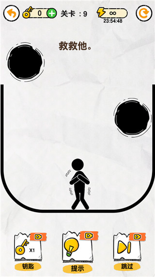 10、第30关(救救他):这关同23关,在子弹发射前,快速地画下长条的竖杠挡住两枚子弹。