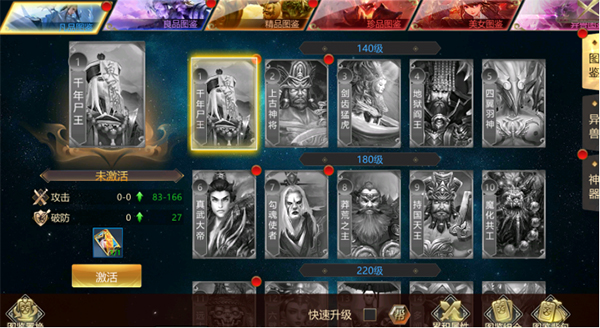 每激活一个图鉴都活获得对应属性,图鉴还可以进行升星