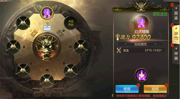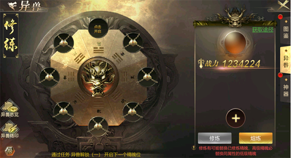 放入对应的异兽精魄进行修炼即可放置对应的槽孔
