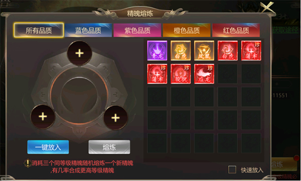 异兽精魄熔炼即可将多余的异兽精魄进行合成更高品质的异兽精魄。