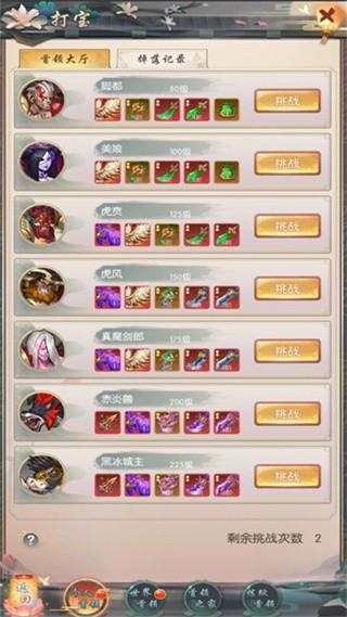 在游戏主界面右下方点击【激战BOSS】进入打宝界面,通过击败江湖中各个首领大盗,也有机会获得各种高级装备。