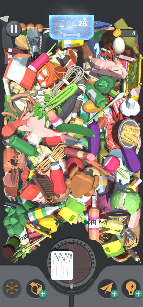 6、这里会有时间限制,玩家需要在时长之内将所有物品全部消除,如果觉得有难度还可以使用道具;