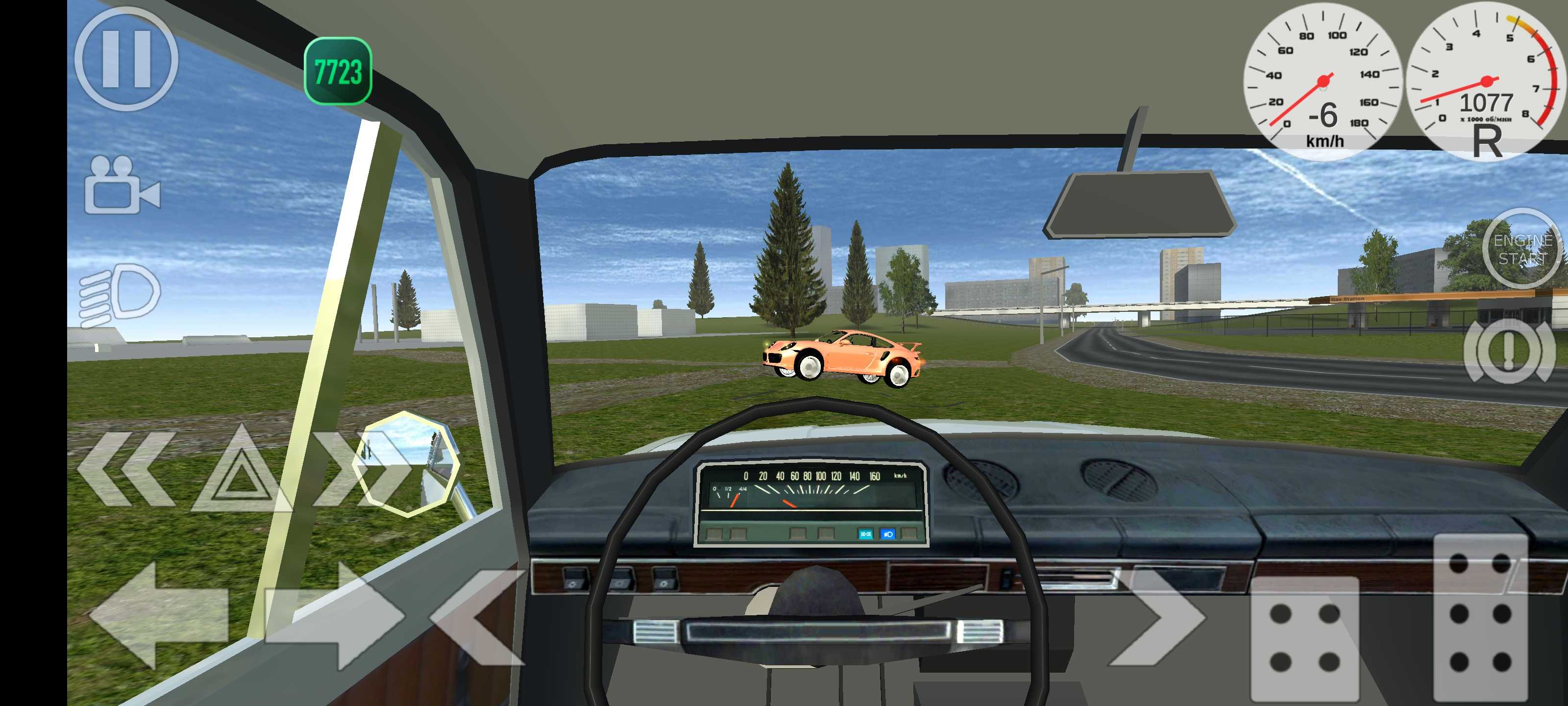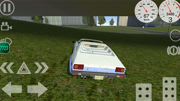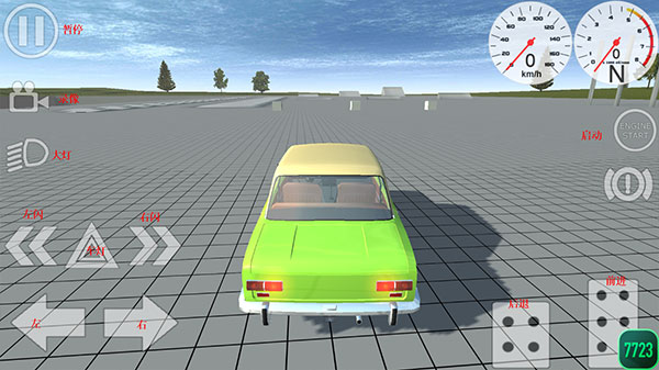 3、进入到驾驶场景当中了,包括录像、大灯、转向灯、启动等按键,我们可以通过左下角的左右控制车辆移动的方向,通过右下角【刹车】后退和【油门】前进按钮来控制车辆的速度,