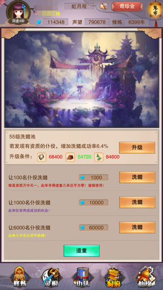 4、门派系统:游戏中有多个门派供玩家选择,每个门派都有独特的修仙方式和技能,玩家可以根据自己的喜好去选择门派。