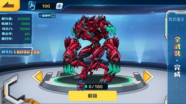 准确来讲,在机甲斗兽场里的狼王叫列烈爪狼王,这是新版本更新后的全新机甲,在机甲仓库的整备可以查看到烈焰狼王的具体属性,初始战力可达到18000000左右,同时耐久度、防御力、攻击力以及暴击率都不是此前玩家所能达到的水平。