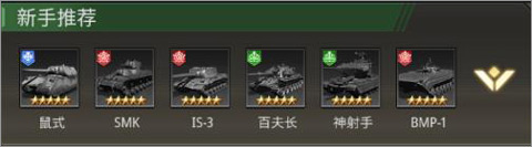 新手时期可采用鼠式+SMK+IS-3+百夫长+神射手+BMP-1组合,该阵容的战车容易获得,可快速获取关卡副本资源。