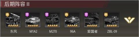 采用东风+M1A2+M270+96A+爱国者+ZBL-09组合,该阵容主打群体流血伤害,同时有着超高的群体回复能力。