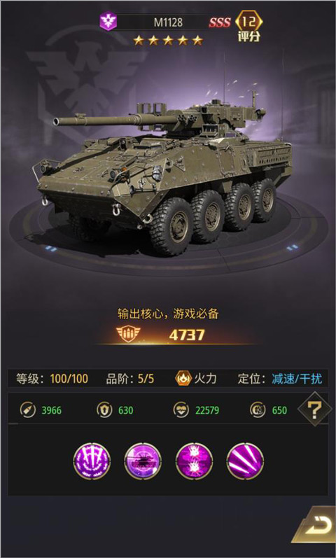 M1128,输出核心,游戏必备,有干扰有debuff,超前那个连锁伤害。