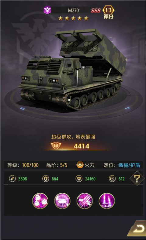M270,超级群攻,地表最强!具有群体伤害以及额外伤害,还带强力护盾,能打能抗。