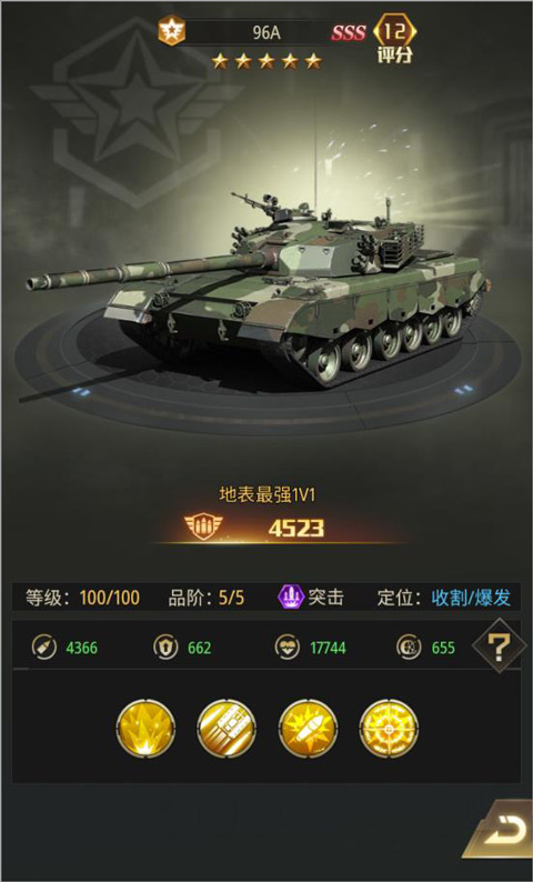 96A,最强单体,针对输出,还能干扰敌方战车,有辅助有输出。
