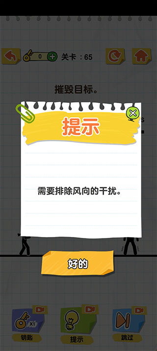 2、根据关卡情景插画图片呈现,开动脑筋解决火柴人吧。
