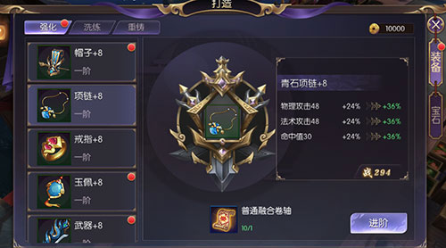 当装备强化到“+8”时,天师们可使用融合卷轴为装备升阶,每升一阶都会增加基础属性12%,基础属性越高将会拥有越强大的战斗力。