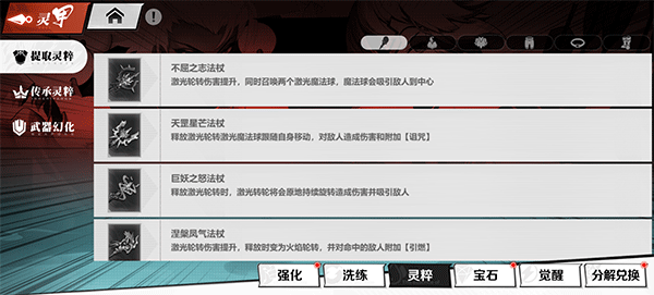 传承灵粹:可以将保存的【人灵技······· 武魂属性】传承到对应部位的装备上,即可变成该属性。