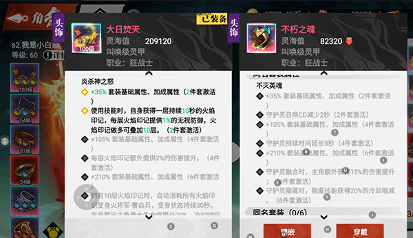 而右边的套装就是拥有套装效果的装备了。