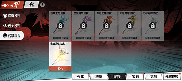《镇魂街:武神觉醒》为了让大家更为自由和方便的打造出自己的流派和打法,还添加了装备灵粹功能。分别是:提取,传承,幻化。