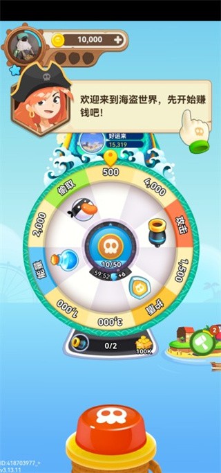 1、首先我们进入海盗来了游戏中,刚进入游戏的朋友可能没有什么金币,所以只能靠转盘来赚钱。