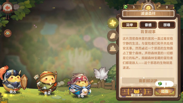 普通图的意义就是刷材料(点击材料显示材料来源),阵容:最高的输出咔叽+吟游诗人+初始箭,攻击上3,4百左右随便打。