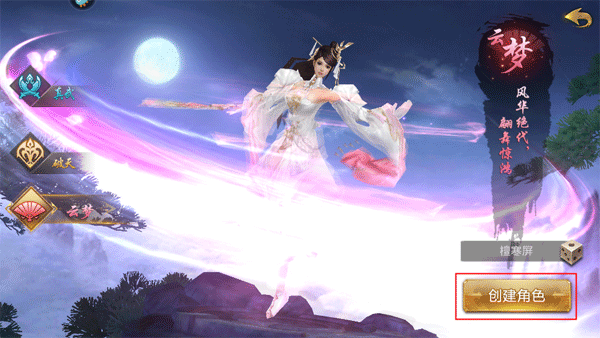 1、打开游戏,一共有三种人物角色可以选择:真武、破天、云梦,以真武角色为例,点击创建角色按钮。