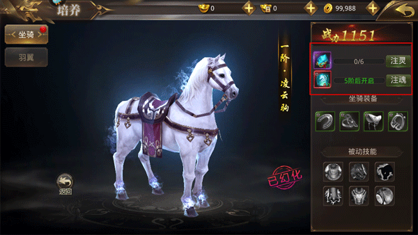 4、随着你的任务的不断完成,以及经验值的不断累积,就可以解锁获得一阶凌云驹,得到良驹你的战斗力也会不断地提升。