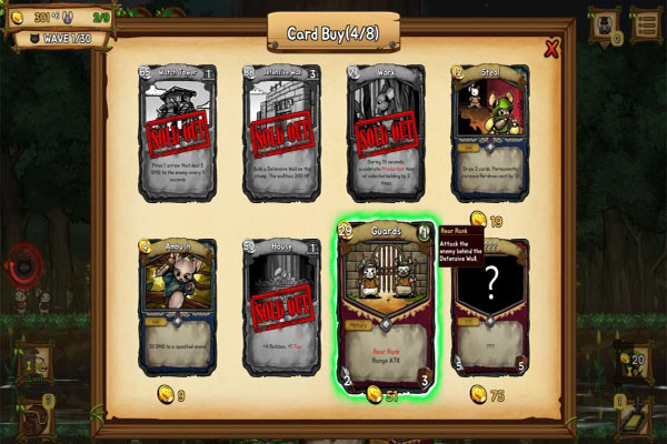使用已有的卡牌抵挡所有怪物的进攻即可获得胜利