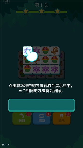 6、点击进入羊羊消除,只需要点击将场地中的方块转移至展示栏中,三个相同的方块将会消除,