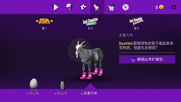 3、完成游戏给的任务,就可以获得得分,可以解锁不同的山羊。