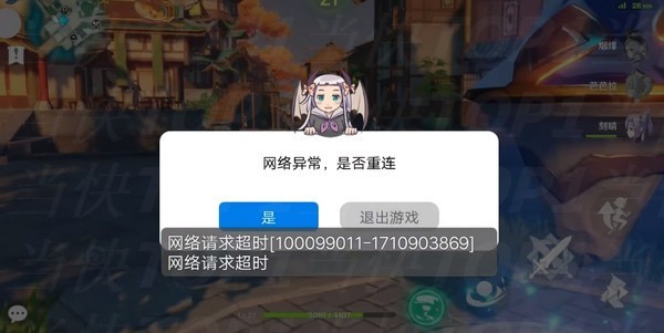 3、此时原神云游戏会出现“网络异常、是否重连”的网络超时报错,就不要管在这里等。