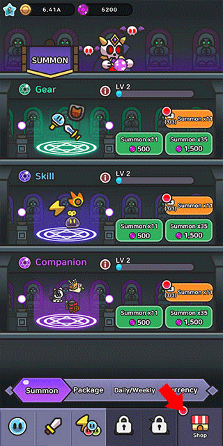 3、装备可以点击右下角进入商店界面,第一个池子就是装备池,第二个则是技能池,第三个为宠物池,大家根据需要抽取即可。