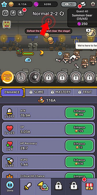 3、史莱姆传奇游戏充斥大量的关卡和boss,战胜他们才能提升自己。
