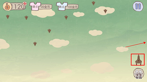 经典的打飞机游戏,相信用微信的朋友都知道。你确实可以在这一关上多玩一会儿,反正不要死掉就好可以了,不过打到你手软,也未必能过关,这就是它的坑爹之处。所以,打不了也打不过,只要点击飞机,然后移动,打几架飞机后就将自己的飞机移到屏幕的最右边,即可过关。