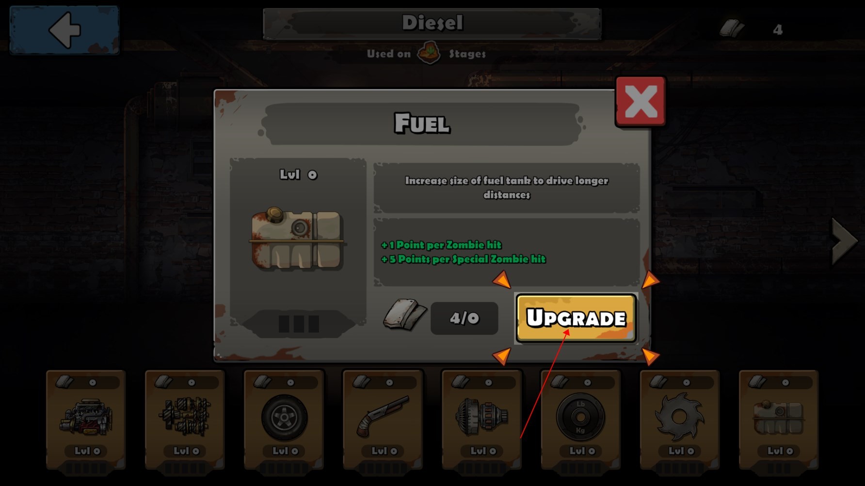4、所以我们到车库,把所有设备都升级到满级,再上路就是无敌的存在啦。