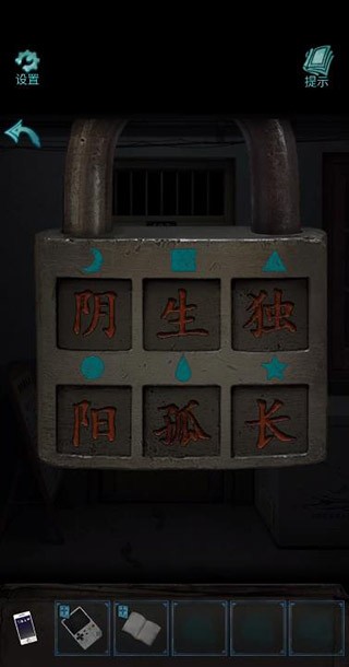 4、接下来我们就可以看到书,从上面开始今天的解谜,根据这本书上的提示我们得到锁的答案【阴生独、阳孤长】锁被打开了。