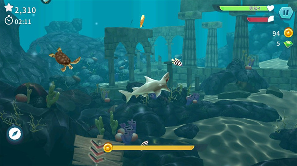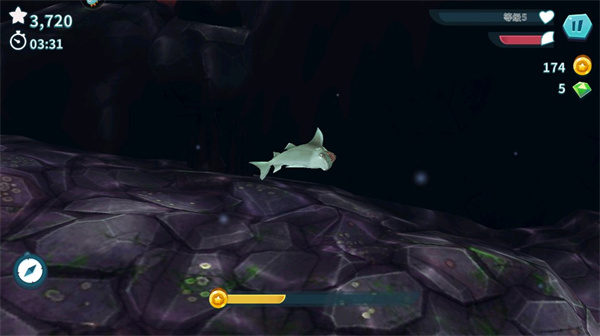 2、体验作为鲨鱼的终极生存挑战,畅游3D世界,在充满惊奇与危险的多样水下世界觅食。