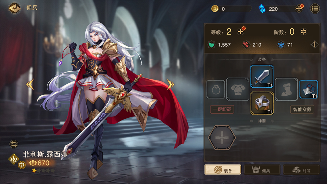 每个佣兵能够穿戴六个不同部位的装备,不同佣兵所使用的装备会因为职业与定位有所区别,同类的装备可以直接替换。