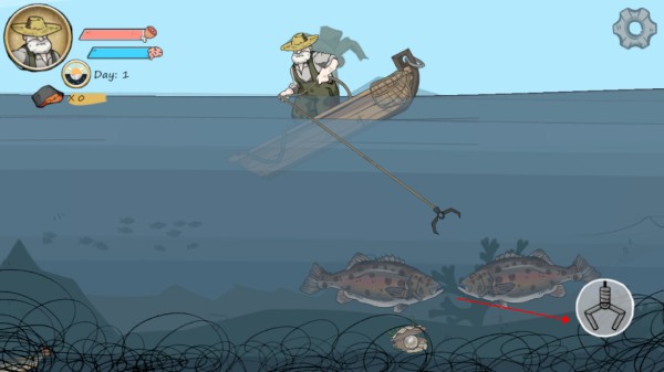 3、游戏的基础玩法借鉴了《黄金矿工》,玩家需要控制老人在船上移动,保持船的平衡,用鱼钩捕鱼。
