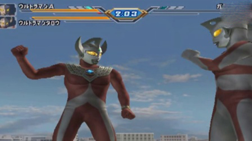 选择两名角色同时与一个敌人进行战斗(2VS1不能选怪兽)。想玩这个模式,你必须要有两个手柄才可以。(高斯和杰斯提斯共同对抗机器怪兽的场面可由我们自己亲手实现啦。)
