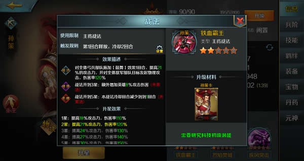 (4)阵容的核心英雄是首充【孙策】,【孙策】的主将战法是为己方全体弓兵部队提高攻击力。可以说是团队的灵魂,点睛之笔了。而且提高的还不仅仅是单属性攻击而是通用的攻击力,这就很舒服,剩下的第三名英雄的选择范围就大了很多了