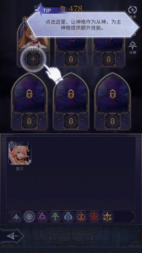 4、培养:有时候你需要提升团队力量来对抗boss,在神格系统内,选择对应的神即可进行升级,其他还包括装备、技能等,都是提升战斗力的有效途径。
