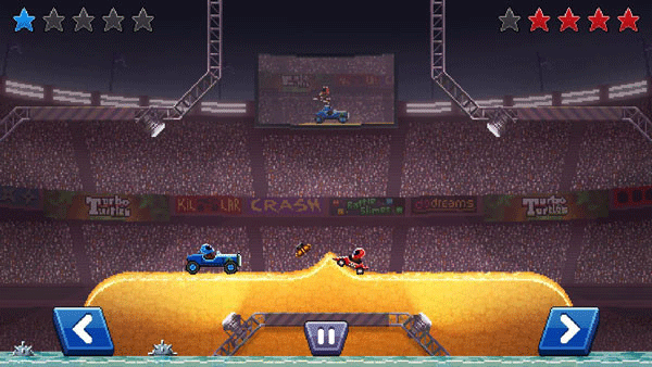 4、自定义比赛或选择随机模式带来的竞技场和决斗模式。你能打败怪物卡车和卡丁车吗?躲起来也没用!