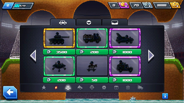 - 熟能生巧。完成足球赛事,并在周末挑战三位足球冠军,成为终极足球车斗士。
