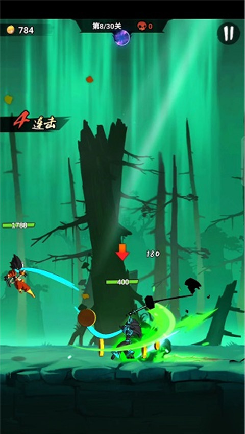 2、暗黑简约的游戏画面,热血刺激的游戏玩法,让玩家清楚的享受火柴人热血冒险;
