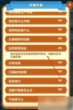 在这个庄园手册中,你会看到一个相关的选项,也就是“如何售卖物品”。然后点击这个选项,系统将会为你展示具体的操作指示。我们可以看到,只要选中物品,然后再点击出售按钮,就能够把物品售卖出去了。假如是操作失误卖出去了,也还可以操作撤回,可以说是非常方便了。