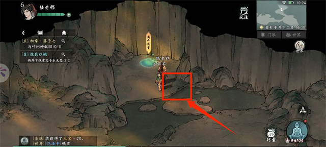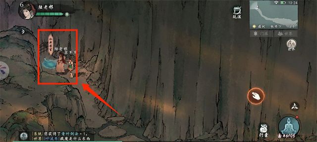 2、当我们跟着主线第一次到这个地方,会先是触发主角被大黄哥欺负抢蒲公英的情景对话,然后我们跟乐无愁对话,她会要求我们下到右边的枯井里面,第一次下井,跟着任务捡道具上来,然后她要求我们再下去一次,这次会出现一条密道。