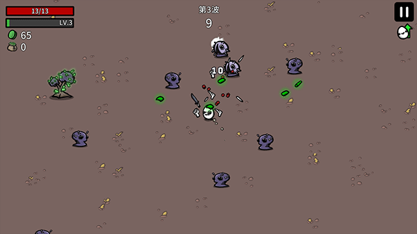 5、收集材料以获得经验并在敌人的浪潮中从商店中获取物品。