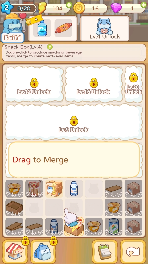 1、身为河马超市的管理者,使用合成方法获得超市运营中需要的一切物资,将超市的布局与设计交给您。